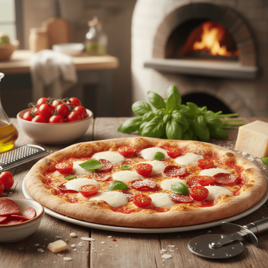 🎨 Decoraciones y toppings creativos – Frutas, verduras, quesos y más para personalizar tu pizza.