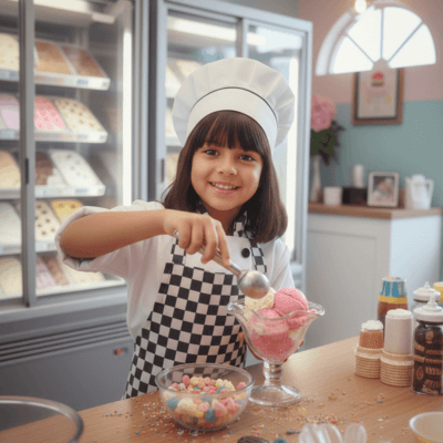 Niños y adolescentes de 8 a 15 años descubrirán lo divertido que es preparar helado de Chocolate y Fresa, mezclar colores y añadir toppings para que cada helado sea único.